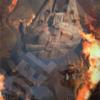 "This is a scene from the novel STAR WARS: LEGACY OF THE FORCE: FURY by Aaron Allston. The Wroshyr trees have been set ablaze by the Star Destroyer Anakin Solo's turbolasers and Han and Leia Solo are working to help contain the fire. (ES)"