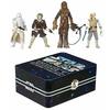 Star Wars Saga Figures Episode V Tin : Item Number: HS87204 Imperial troopers have entered the base! Escape Darth Vader's clutches with the Star Wars Saga Figures Episode V Tin. Includes 4 Star Wars 3 3/4-inch action figures from The Empire Strikes Back, packaged in an attractive tin. This boxed set of action figures includes Snowtrooper (with removable helmet), Han Solo (in Hoth Gear), Luke Skywalker (in Hoth Gear), and Chewbacca (with Hoth snow).