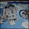 Once I had them spread across the floor I immediately knew what I was doing with the R2-D2 set. It was to go in my office upstairs. Now what am I going to do with the C-3PO, and Chewbacca? I thought about putting Chewy in a closet or laundry room just to mess with people but of course soon as my little cousins Alex & Zac saw what I had, they wanted some too. Of course being the cool cuz I am, they were soon applied in their bedrooms.