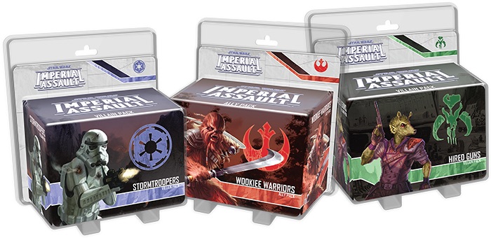 From FFG's website:Each figure pack has plenty to tip the odds in your favor, whether you play a campaign or a skirmish. In each expansion, you’ll find sculpted plastic figures to swell your armies, alongside a new campaign side mission and a new skirmish map with two skirmish missions. Combined with new Deployment cards, Command cards, Reward cards, and Agenda cards, these figure packs expand your options for any game of Imperial Assault. Unlike other Ally Packs and Villain Packs, these figure packs do not replace tokens found in another expansion. Instead, this wave of Ally Packs and Villain Packs offers brand-new units to introduce to your games of Imperial Assault for the first time!