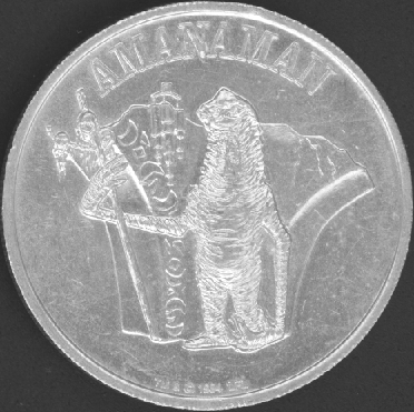 The Amanaman action figure from Kenner, in original package. Closeup views of both sides of the collector's coin accompanying the original Amanaman action figure.