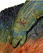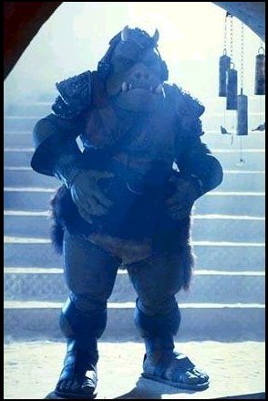 The second distinguishable gargoyle is the head of an Ishi Tib of indeterminate age and sex. This person may have been a special favourite of the Hutt. The Ishi Tib who rode with the sail barge on its last journey to Carkoon was probably not the one honoured with the sculpture. He did not appear to command so much attention or esteem.