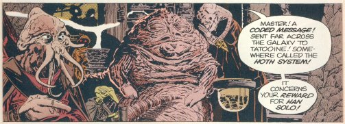 In the Classic STAR WARS comics, Jabba received intelligence suggesting Solo's presence in the Hoth system. He sent bounty hunters to investigate; they caught Solo aboard the ship of the pirate Raskar, but the Corellian eventually escaped. Perhaps more minions of the Hutt returned later to continue the search, and trophied a tauntaun head while they were there?
