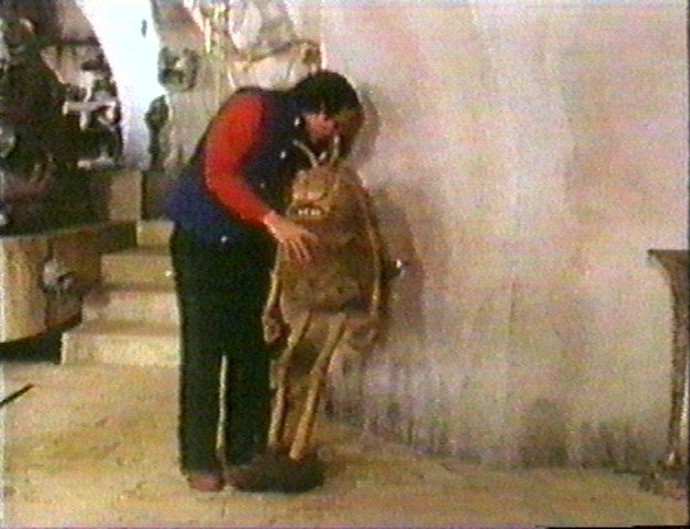 Widescreen view and closeup of the tauntaun head mounted on the wall of the audience chamber of Jabba's palace, facing towards the throne room's upstairs side exit.
