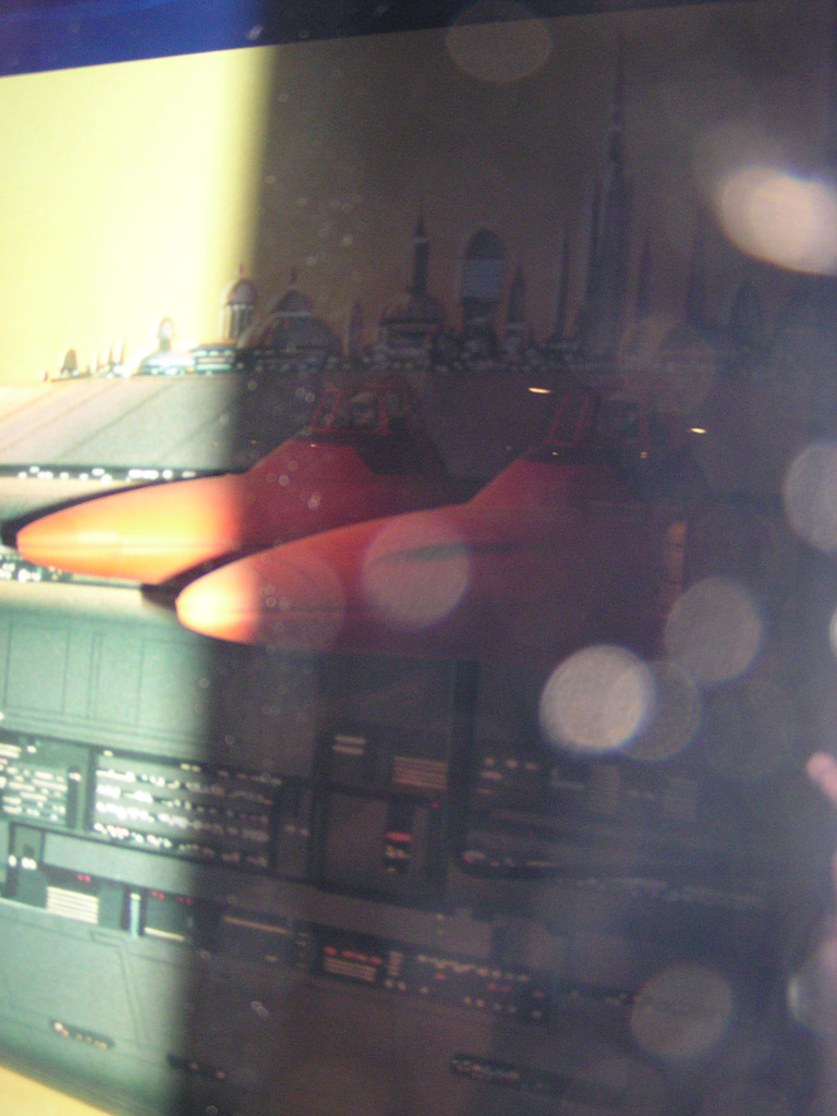 The port side of a cloud car. The sooty streak around the portside gun may have been left by the blowback of hot, escaping coolant gas, or perhaps something airbourne that was near the muzzle and affected by the energy beam? [Jan 2003]