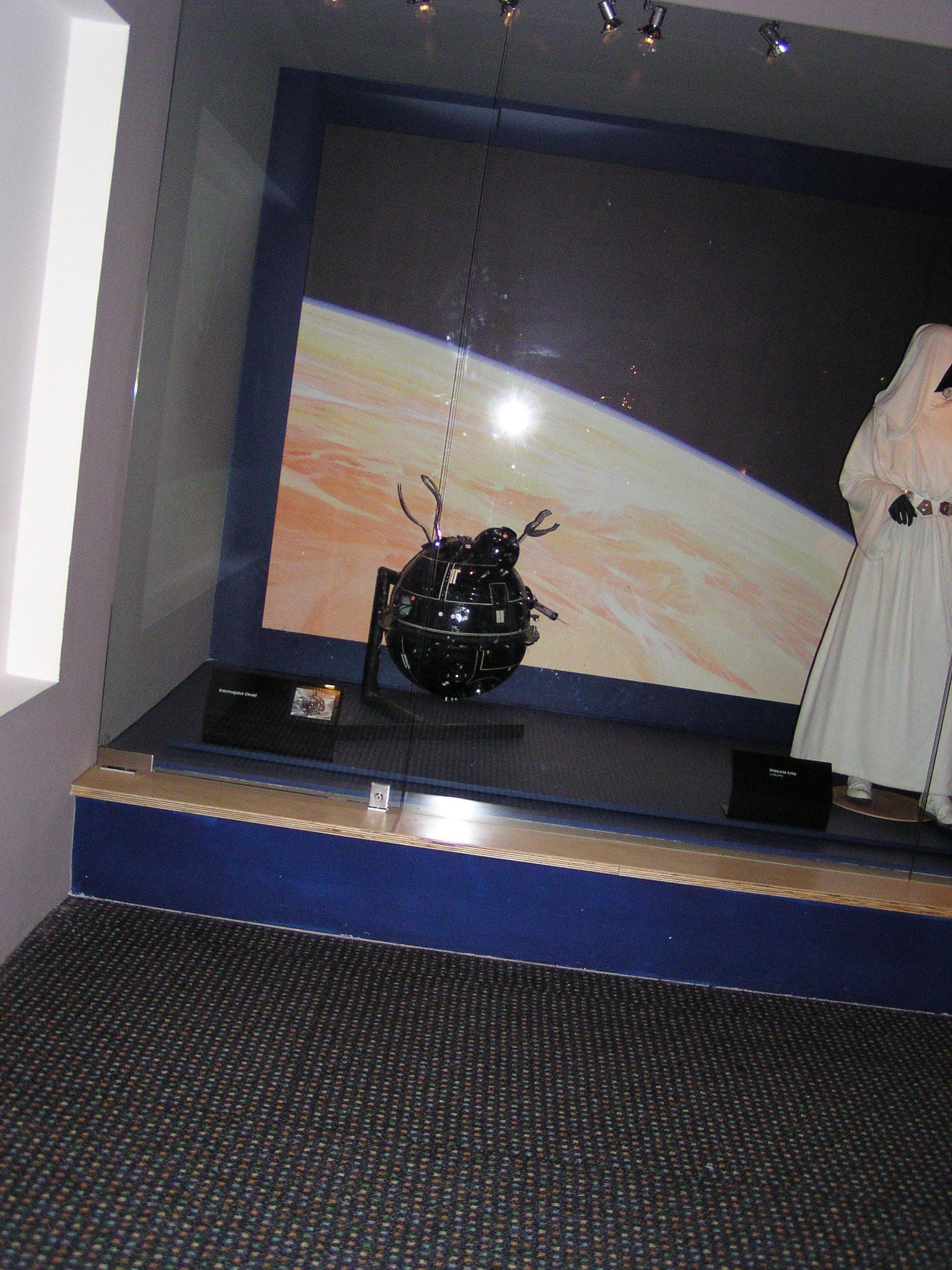 Under the right side of the interrogation droid. Some of the lower rear panel outlines are visible. |
