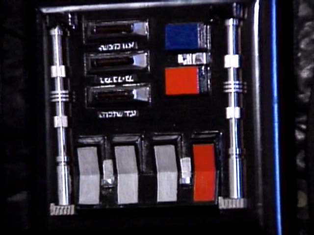 An assortment of small models. Two snowspeeders sit on the black tile on the left side. To the right of them sits Luke's model of a skyhopper. In front of that is a small star destroyer model, perhaps the one that was built to scale with the Executor. To the right is the damaged wing of Lord Vader's TIE fighter. Behind the vertical racking, in the centre of the shot, there appears to be a still smaller star destroyer model. Is it a destroyer or is it an Executor dreadnought? What was it's purpose in the films? |