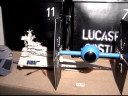 Imperial Probe Droid model, with mine cart from Indiana Jones and the Temple of Doom at lower left. |