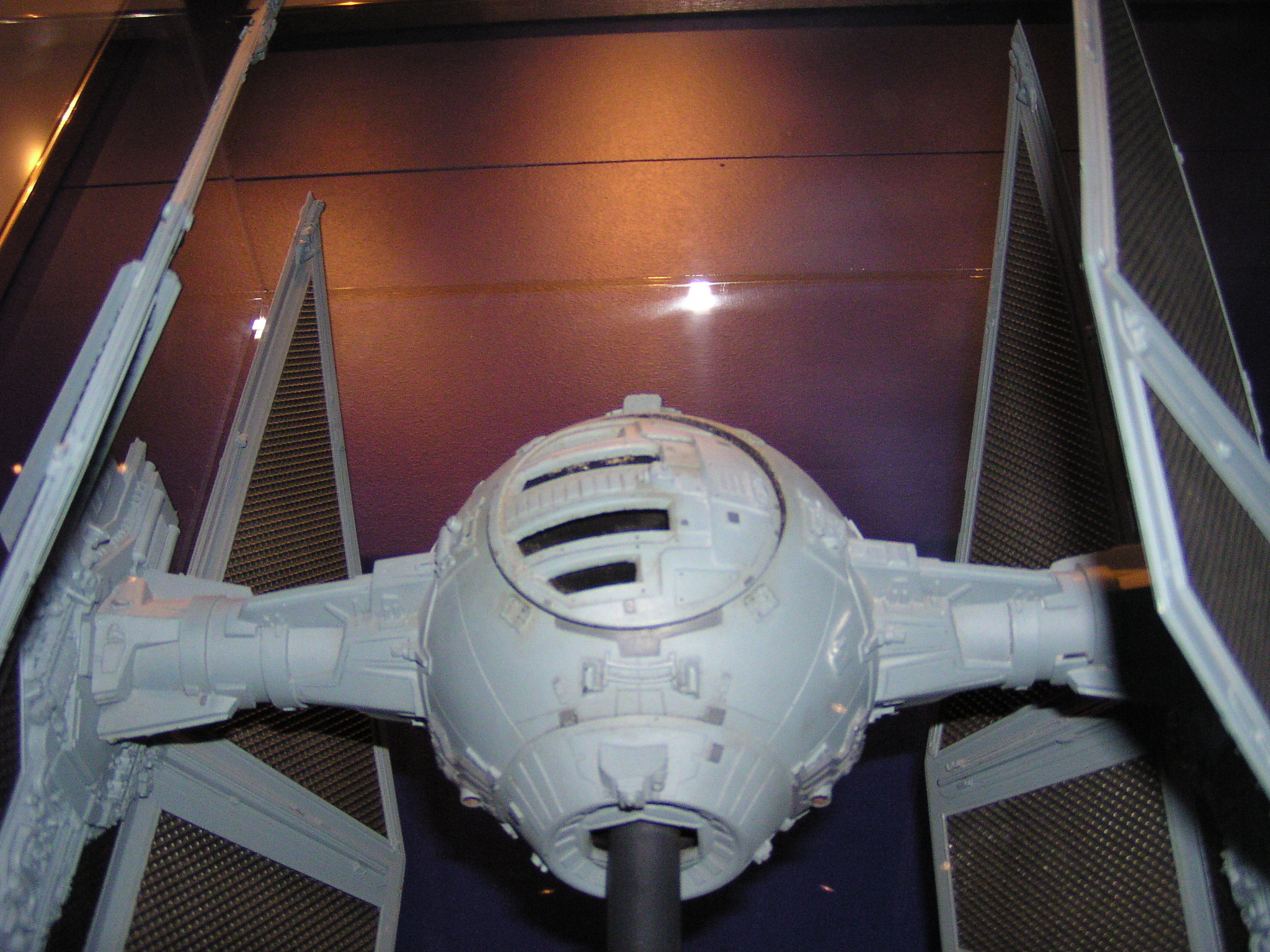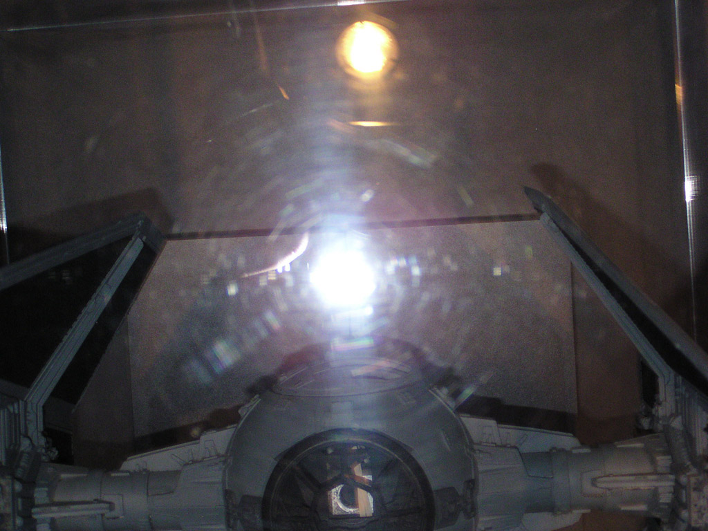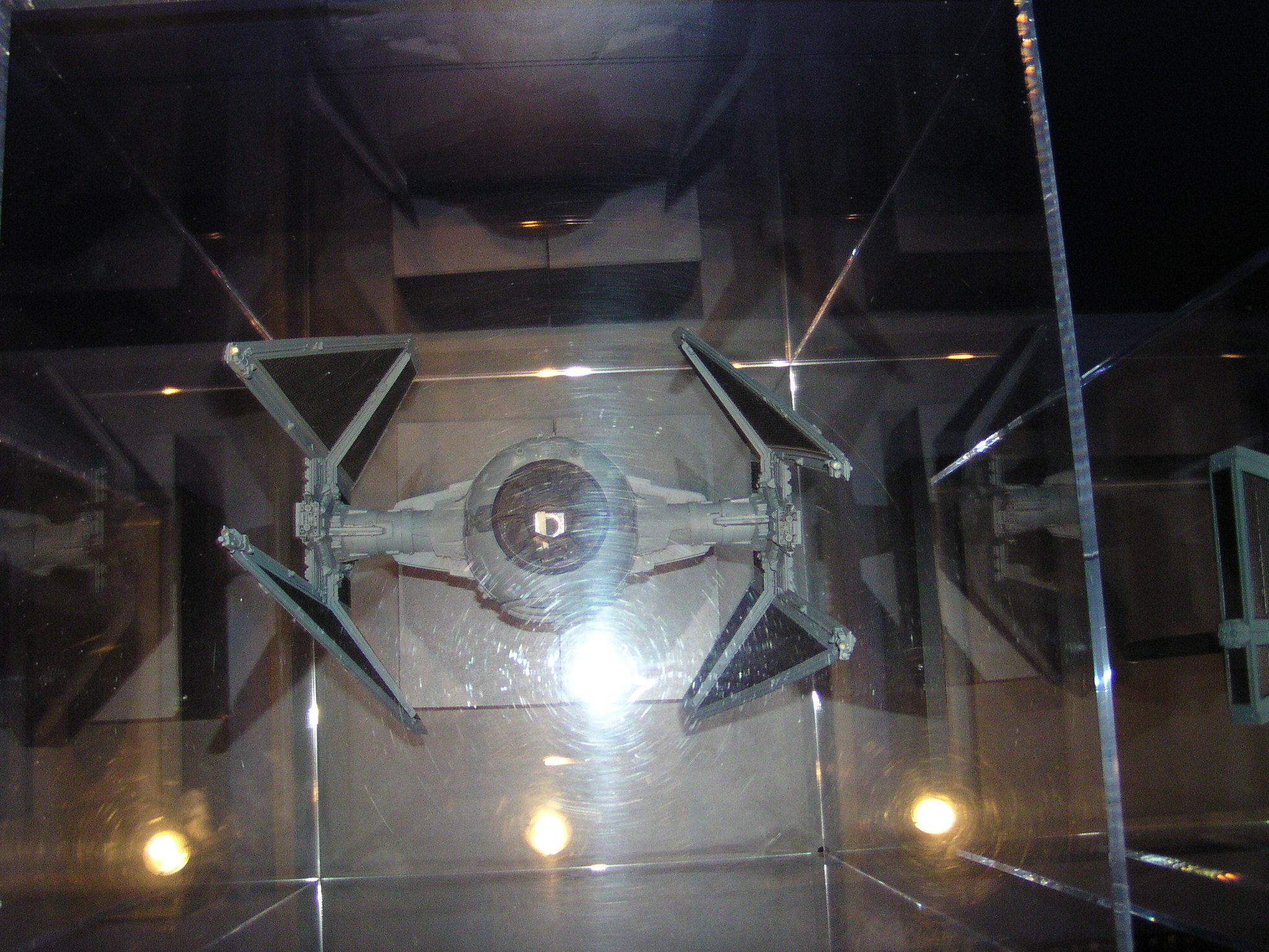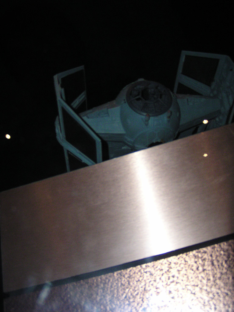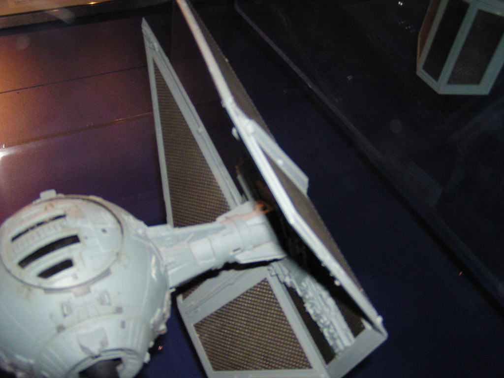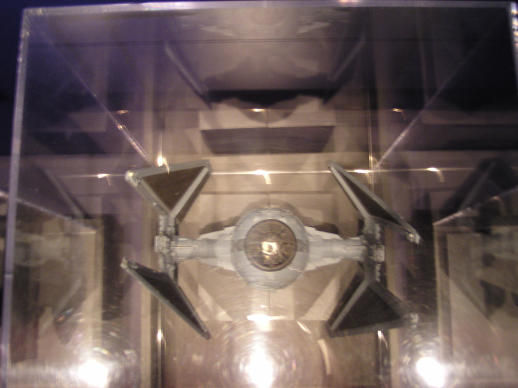 More or less direct topside views of TIE interceptor, from a vantage far from the display case. These images may be useful for confirming plan measurements of the vessel. The mis-installation of the upper lid is most obvious from this view. [21 Dec] |