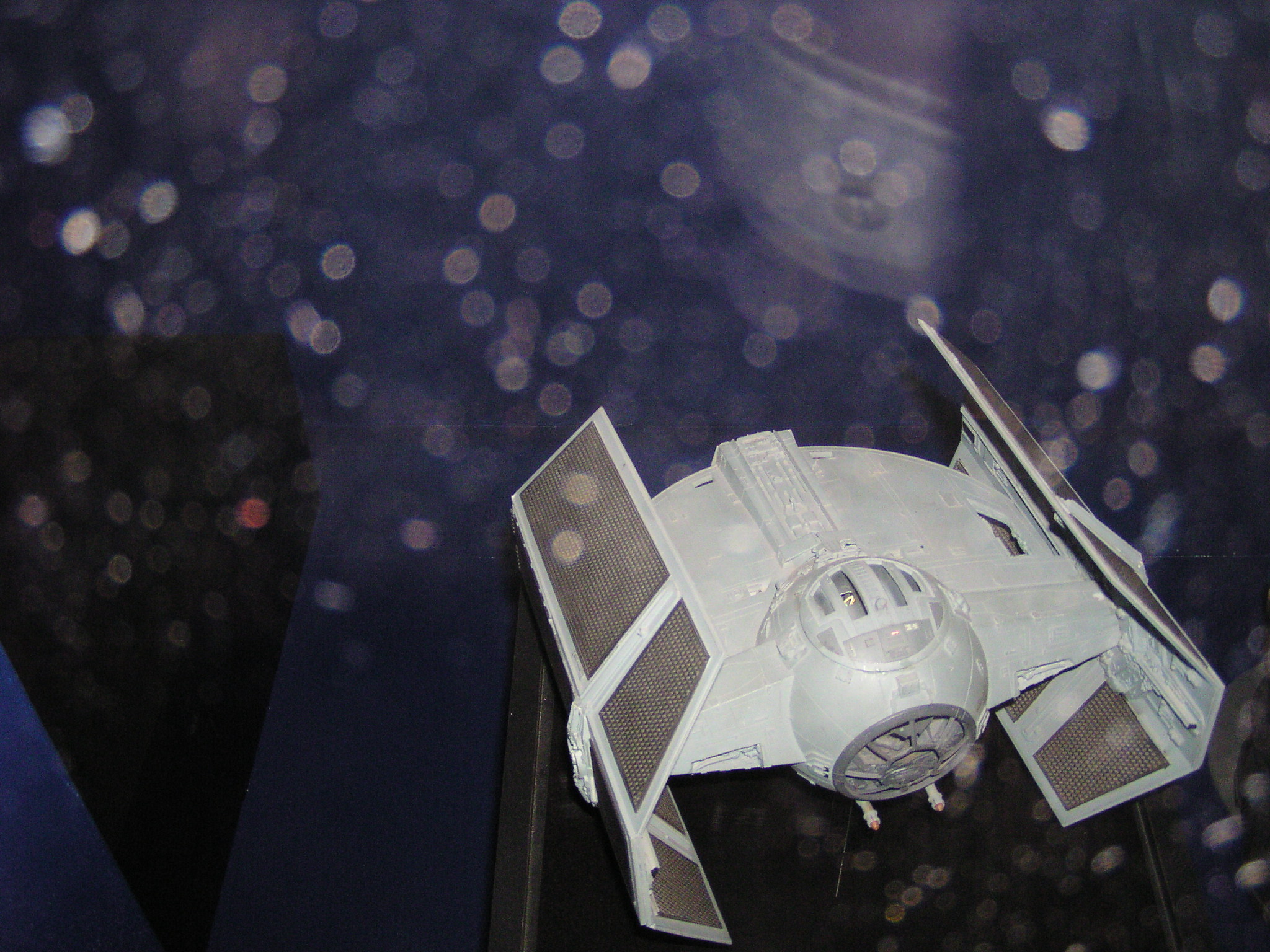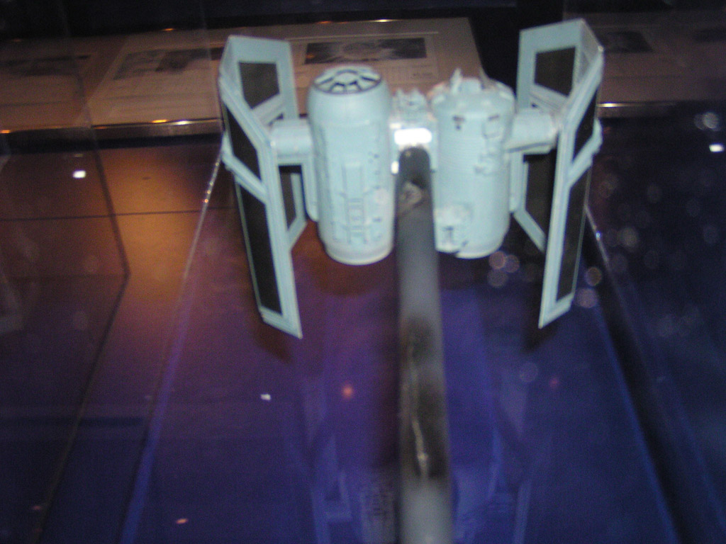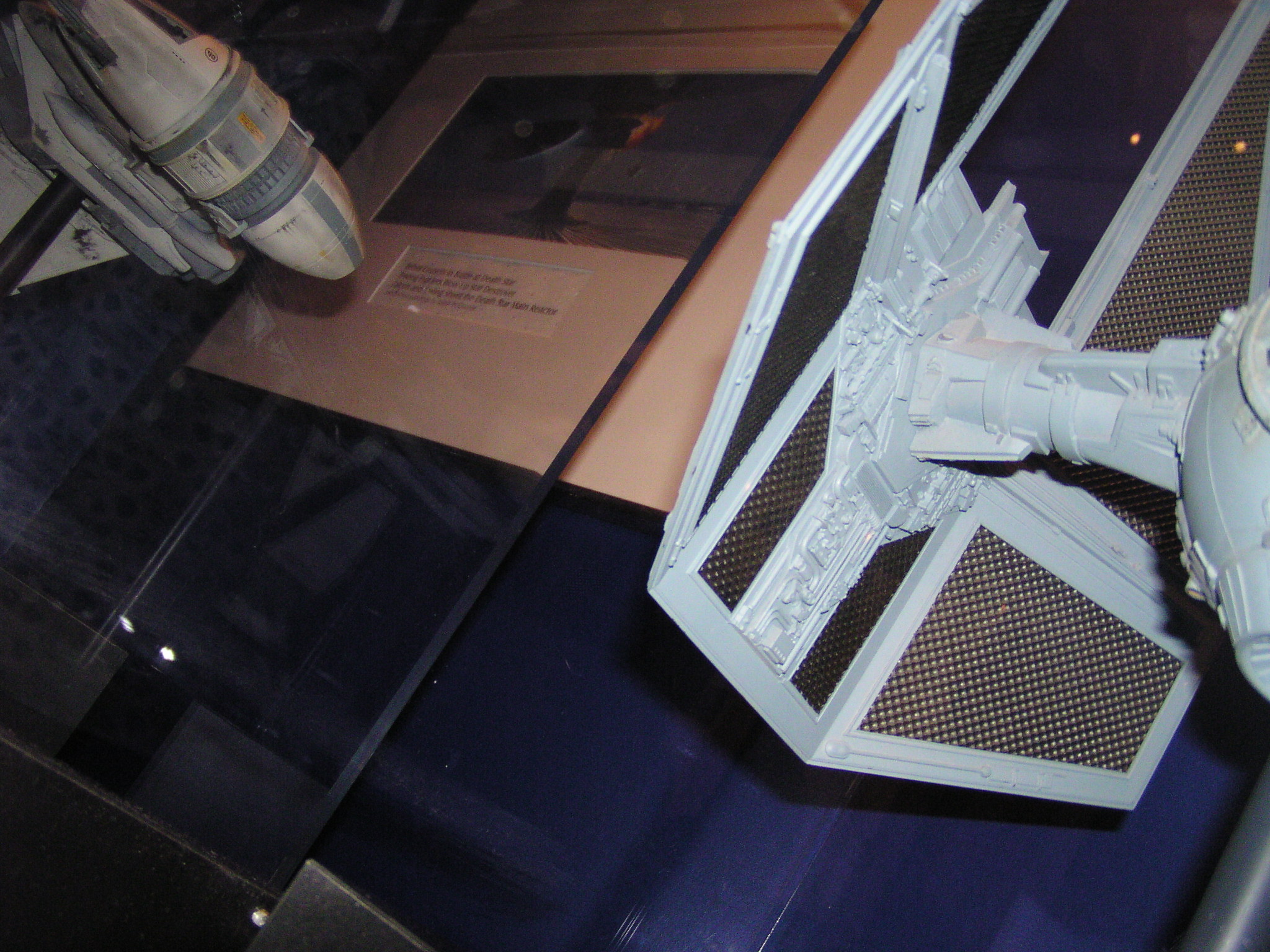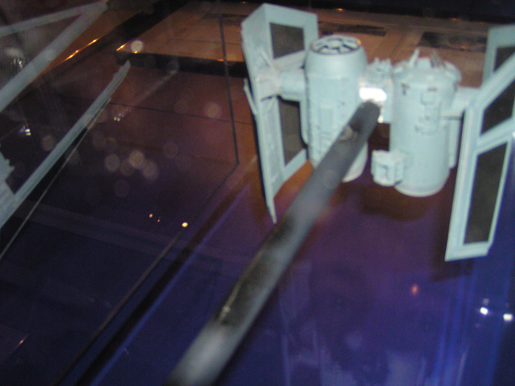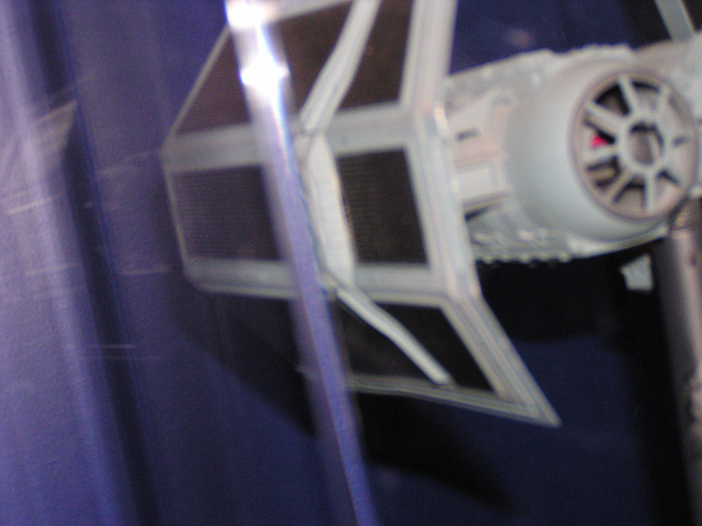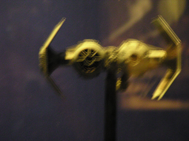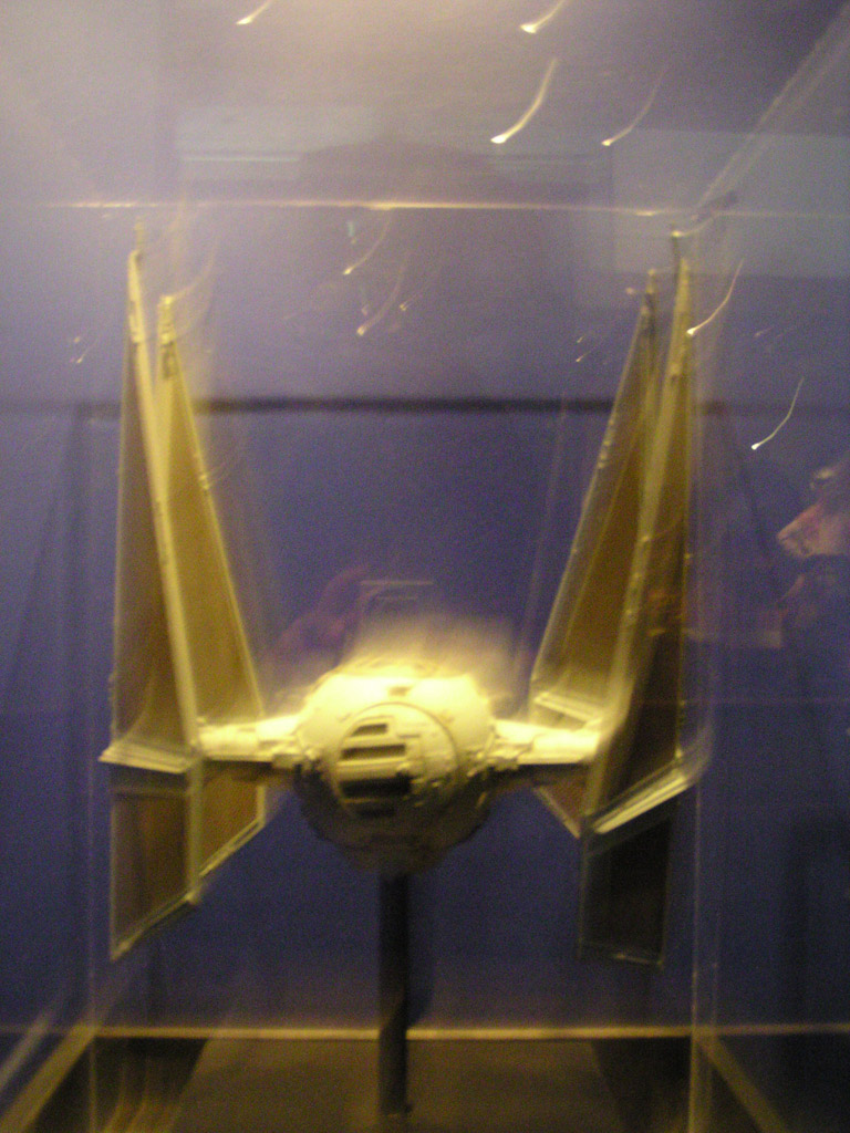More or less direct topside views of TIE interceptor, from a vantage far from the display case. These images may be useful for confirming plan measurements of the vessel. The mis-installation of the upper lid is most obvious from this view. [21 Dec] |