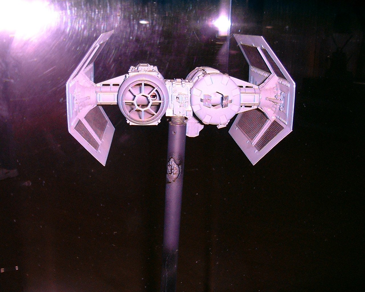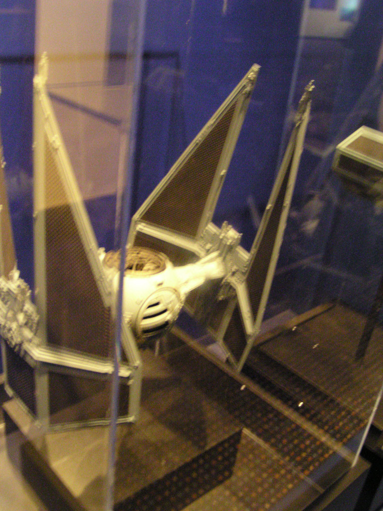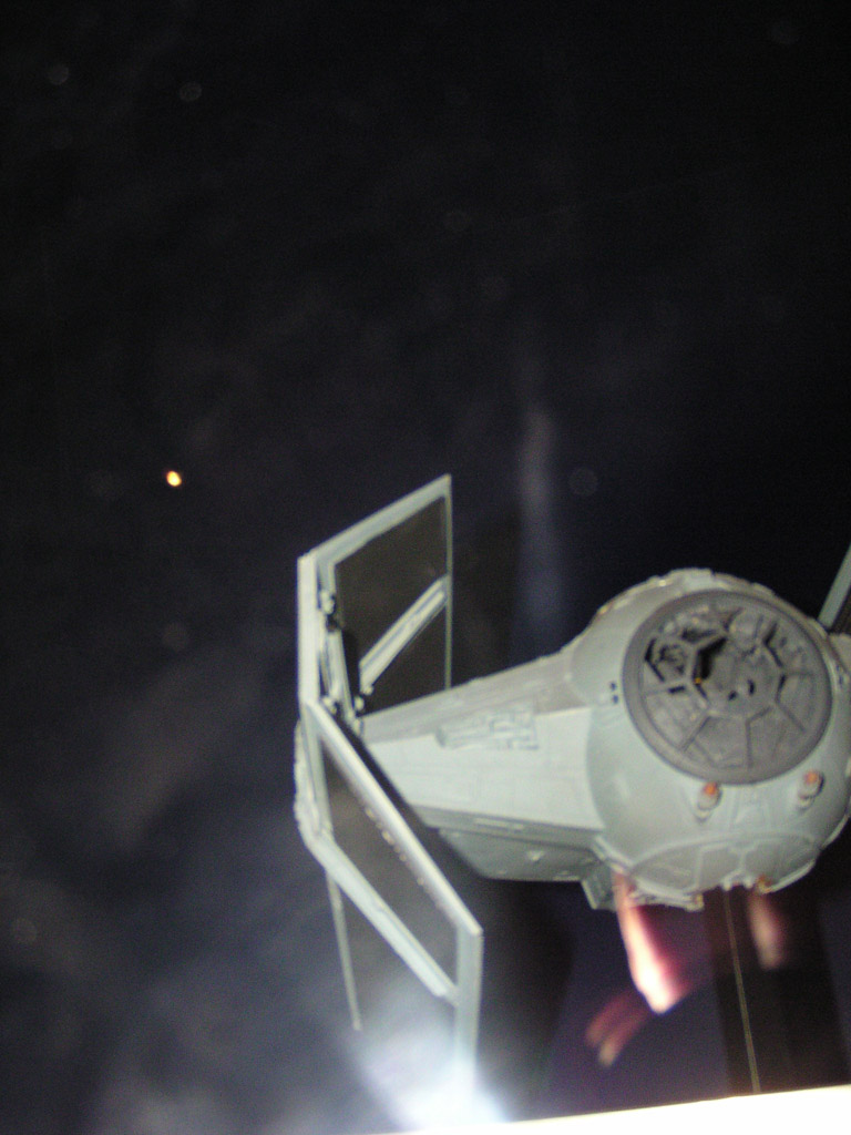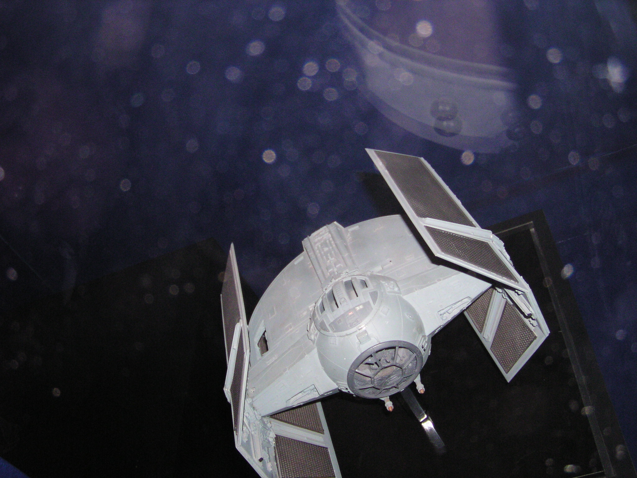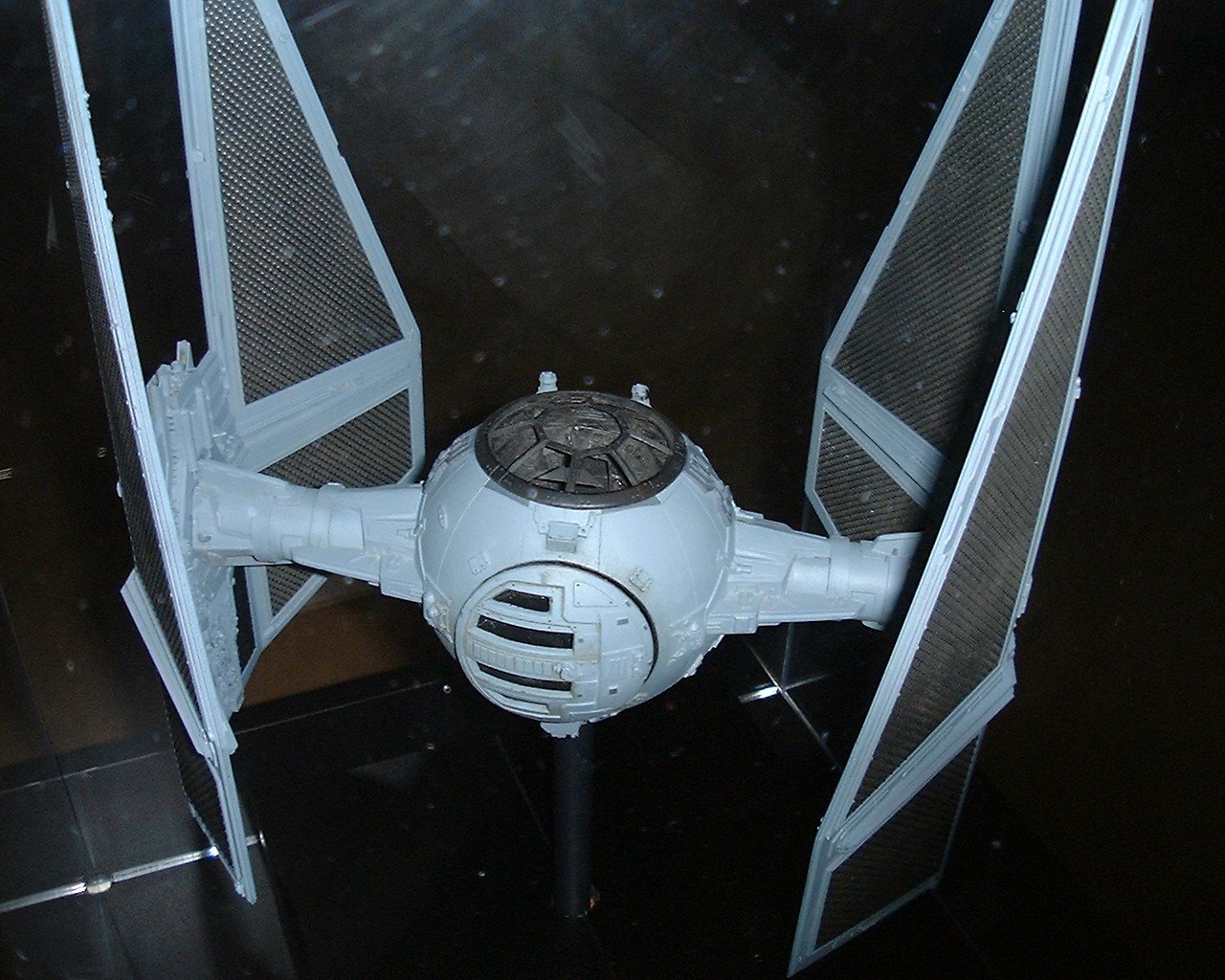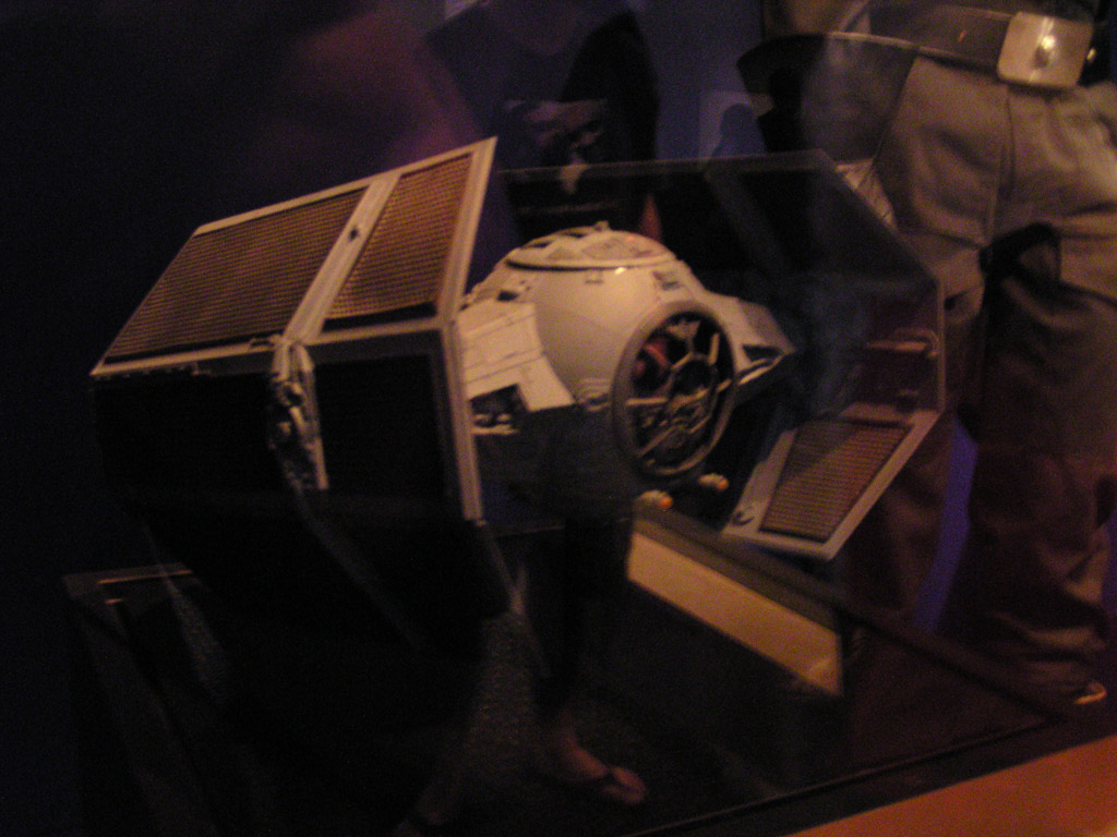 More or less direct topside views of TIE interceptor, from a vantage far from the display case. These images may be useful for confirming plan measurements of the vessel. The mis-installation of the upper lid is most obvious from this view. [21 Dec] |