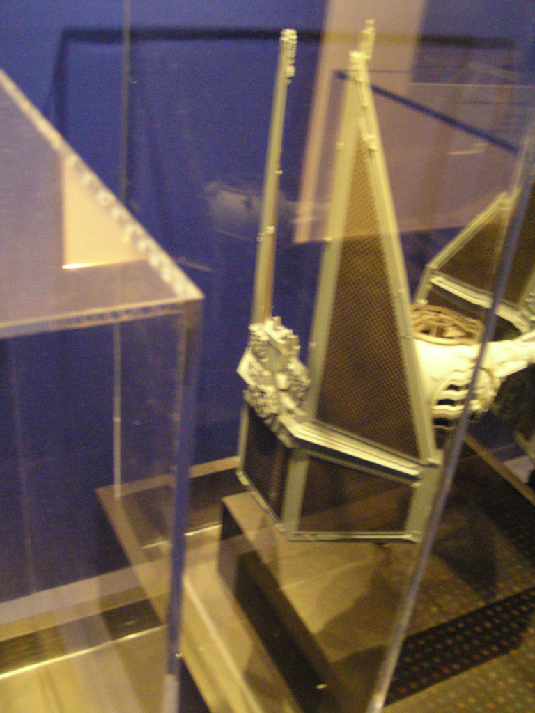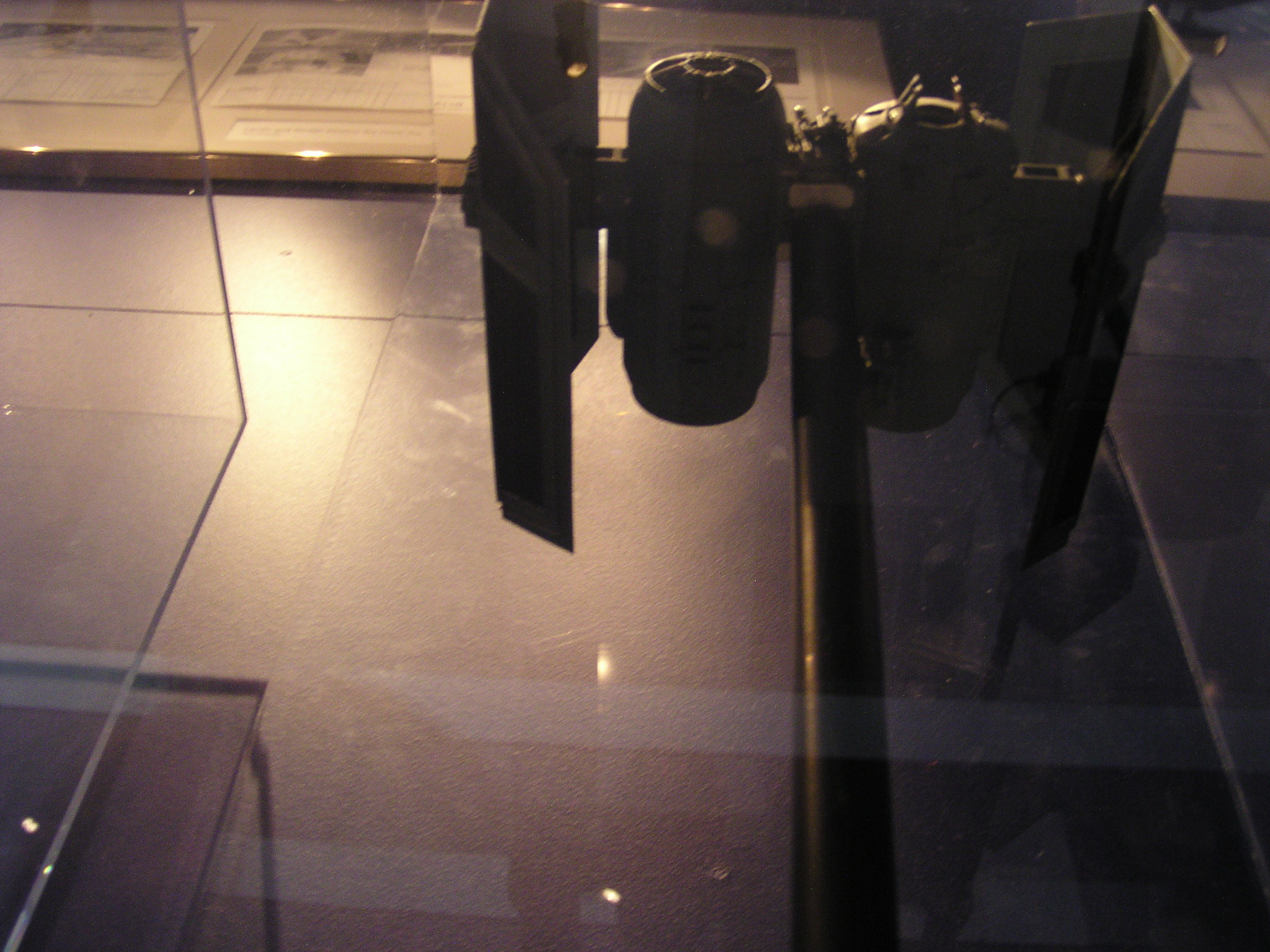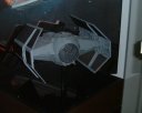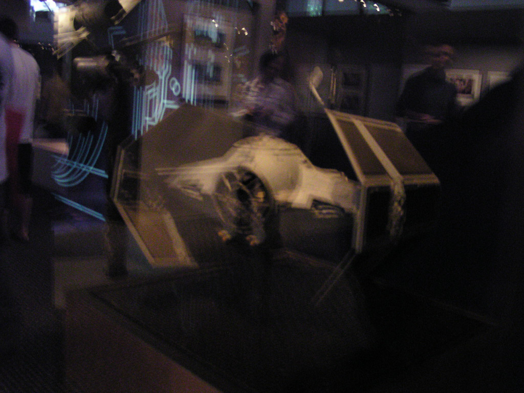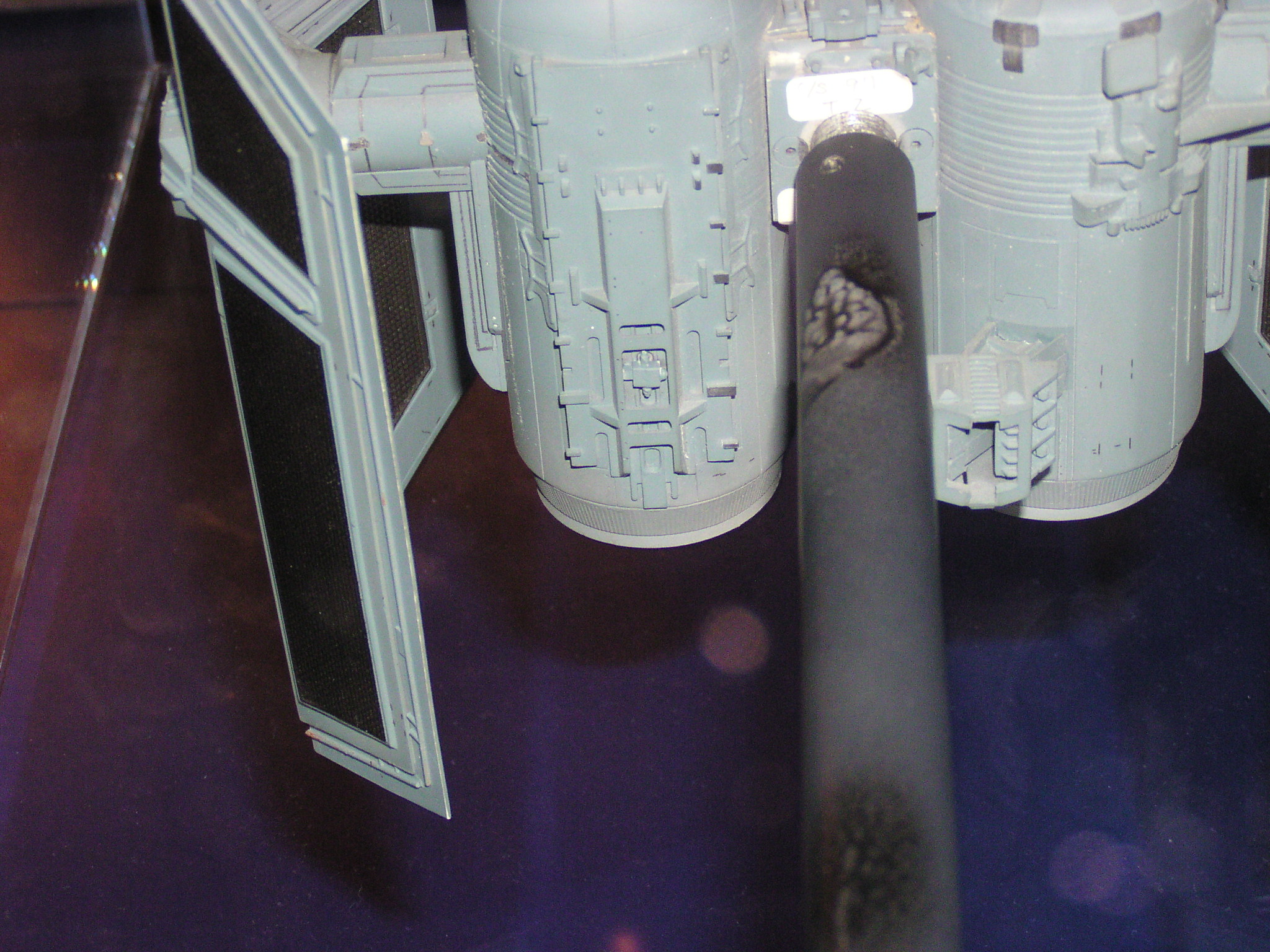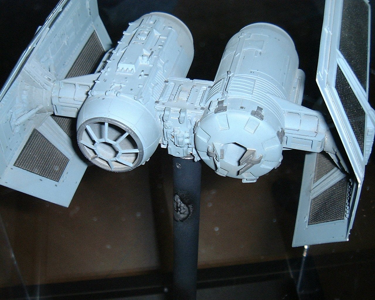 More or less direct topside views of TIE interceptor, from a vantage far from the display case. These images may be useful for confirming plan measurements of the vessel. The mis-installation of the upper lid is most obvious from this view. [21 Dec] |