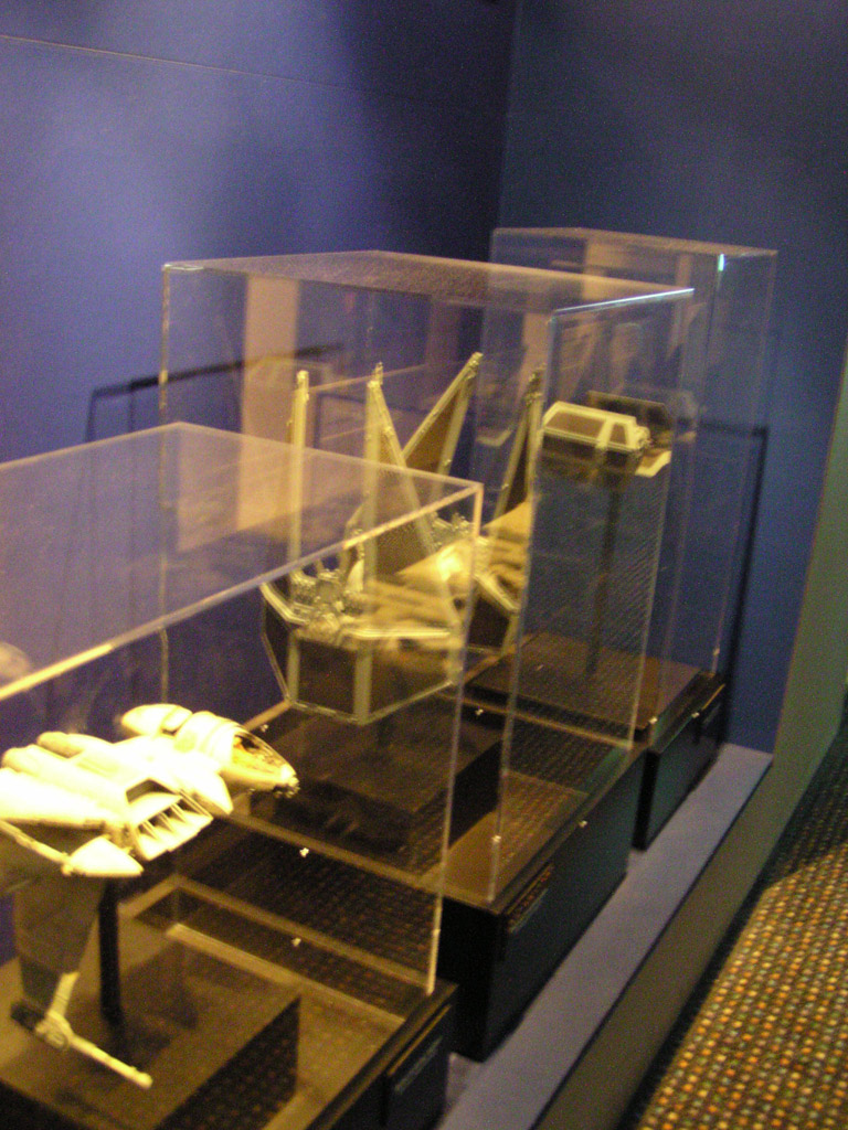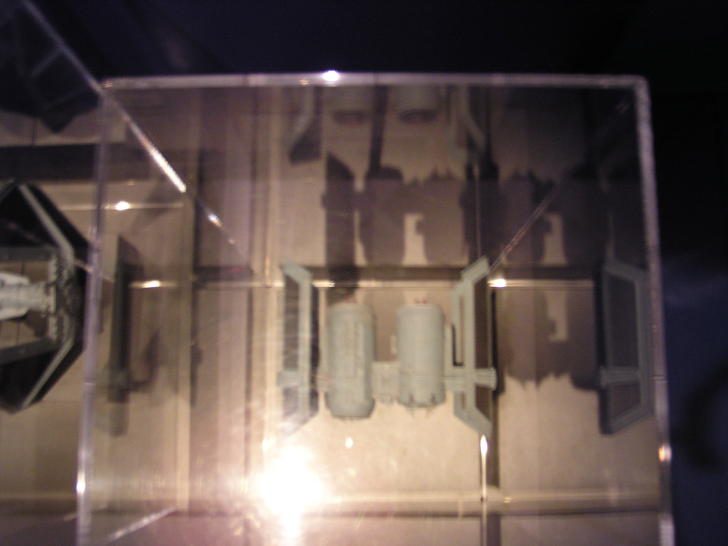 Another view of the situation around the TIE interceptor, bomber and B-wing models. The visible vertices of the rectilinear display cases may be compared with their apparent positions in other photos. Potentially, with further study, this would allow stereoscopic calculation of the 3D structures of the models and their environs. [21 Dec] |