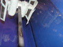 Rear topside views of the starboard radiator wing of a TIE interceptor. Note in this light the matte appearance of another thin sector on the cockpit bulb, just aftwards of the upper lid. [22 Dec] |