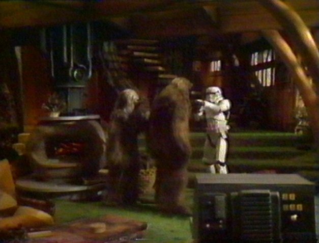 Wookiee relatives of Chewbacca are able to obtain a video link to the Princess' office.