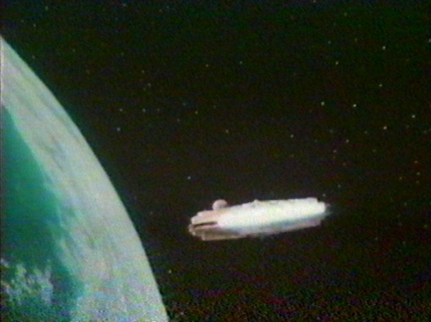 Progression of views of the belt and the base as the Millennium Falcon careens past.