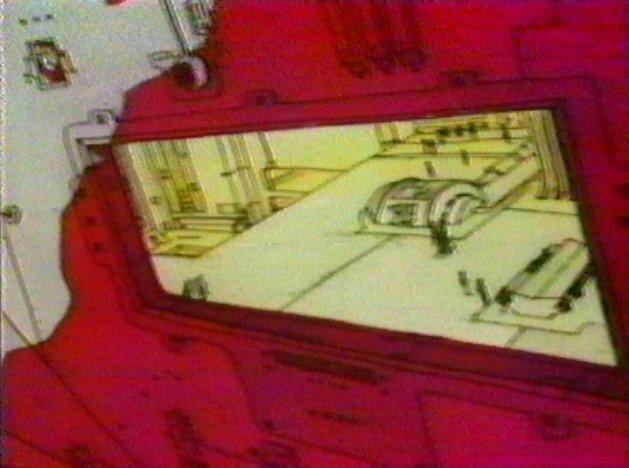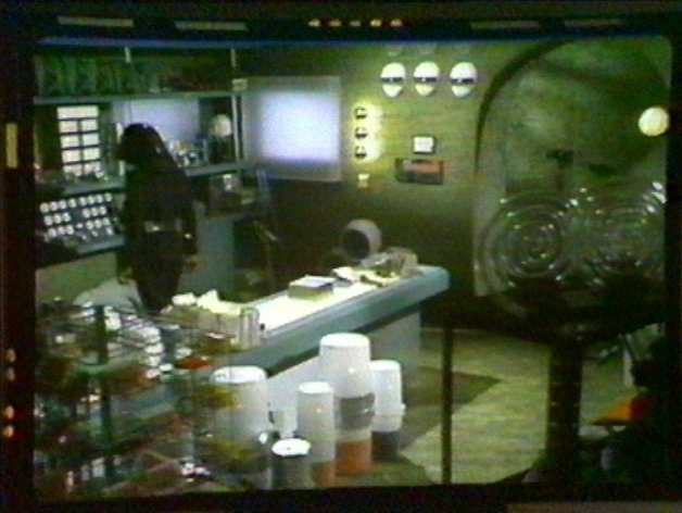 The Star Wars Holiday Special shows two interior views of the current base. The first is a workshop area off one side of a hangar. An X-wing fighter is visible in the darkened background. In the foreground, Luke Skywalker and his astromech droid attempt maintenance on an "engine". It looks too small to be the whole engine of a starfighter; it may be from a smaller, surface vehicle. The deck is a metallic grille, and the walls are bland and artificial, unlike the walls of the Yavin 4 base.
