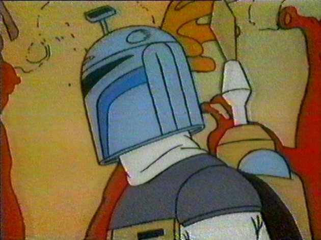 Luke Skywalker drives the autonomous head of his Y-Wing a short distance before he is unexpectedly rescued from the monster by Boba Fett, astride a more docile native creature.