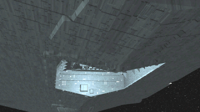 Ventral views of ISD-I star destroyers; the heavy brim-trench cannons are visible in the smaller notches.