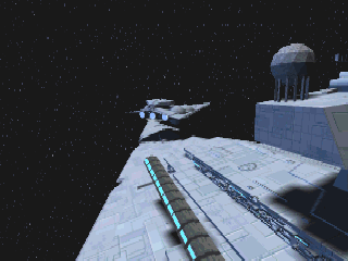 Imperial destroyers and the Executor advance rapidly upon the Death Star II as seen on the monitors in the base on the sanctuary moon. Every second they moved a distance of at least one interval. There were at least 22 vessels, without accounting for possible superimposition of ships. battle station. The last link is to a 24fps QuickTime animation of the onscreen motion.
