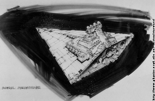 The final version of the Star Destroyer, built in several different sizes, was meant in filmic terms to be about six miles long.