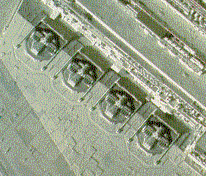 Two visibly large and important ventral turbolasers are mounted just beyond the forward lip of the primary docking bay of the ISD-I design. The barrels sit near the corners of the docking bay, seemingly amidst the machinery surrounding the twin dishes that are commonly regarded as tractor beam projectors. In fact it is even possible that the turbolasers are mounted inside the dishes. (The dishes are discussed in the docking bays section.) The cannons presumably were designed for defending the vulnerable docking facilities, but were also active during the pursuit and bombardment of Princess Leia's Tantive IV by the star destroyer Devastator.