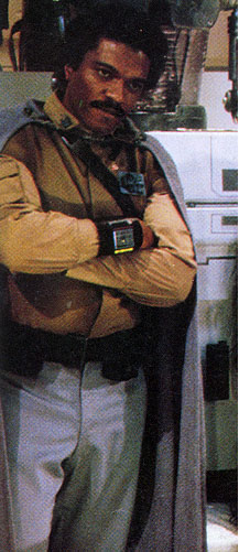 General Lando Calrissian and Princess Leia Organa (military rank unknown) wore essentially the same kind of Calamarian-style uniform. The shirt/blouse and pants are identical. The jacket differs, and the Princess lacks the collar gadgets. In keeping with human custom, the Princess, as a female officer, wears her insignia on the opposite side of the torso.