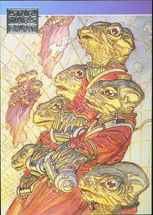 STAR WARS Galaxy card #98 shows several juvenile Mon Calamari in school. Their cranial domes are underdeveloped compared to the adults'.