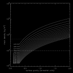 These plots should provide a visual impression of the range of parameters that are realistic for a planet with tolerable gravity and the ability to retain an atmosphere in which humans can survive.