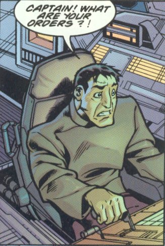 Red-uniformed naval captain, and green-uniformed crew from Eternity's End, some time after the start of Palpatine's chancellorship.