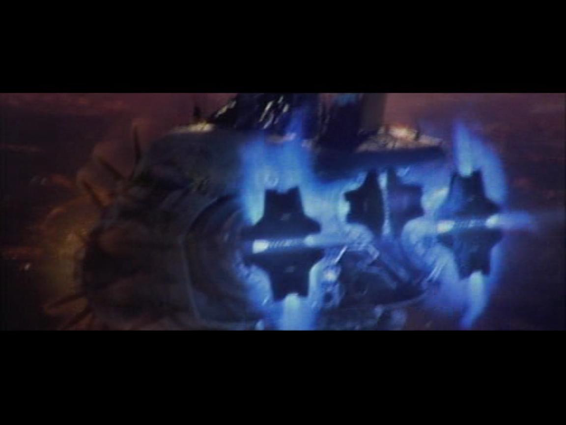 Sublight thrusters are not limited to a direct, forward thrust. The exhaust streams of charged particles may be deflected to one side or another by the application of electromagnetic fields. Alternatively, the thruster may apply the [unknown to us] types of fields that comprise particle shields. The visible, external devices that project the fields for angling thrust are sometimes called “thrust vectrals” or “thrust vectoring vanes”. They may resemble flaps, rings or rudders at the mouth of the drive. If the drive mechanism involves rotation or imparts spin to the relativistic particles, then this may provide mechanisms for thrust vectoring, as well as affecting the overall stability and collimation of the stream.