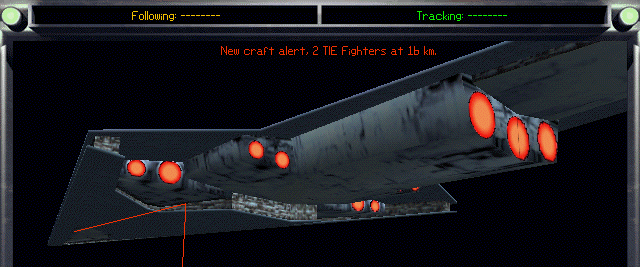 Meanwhile the LucasArts Entertainment Company, itself a division of Lucasfilm, has used “super star destroyers” in some of its computer game products. Images of these giant vessels in scenes of TIE Fighter are correctly proportioned, unlike the WEG diagrams. Dark Forces and Rebel Assault II are faithful to the larger length portrayed in the STAR WARS films and directly defy the error propagated by West End Games.