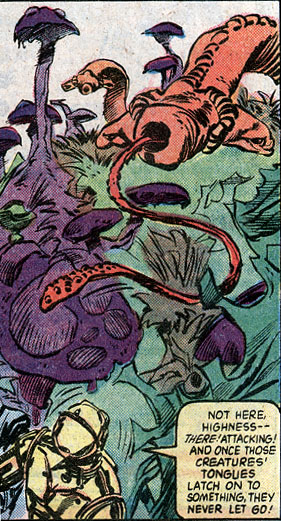 Princess Leia and C-3PO were unlucky to meet a pair of voracious gundarks on an uncharted jungle planet during the search for a new base to replace the Hoth facilities.