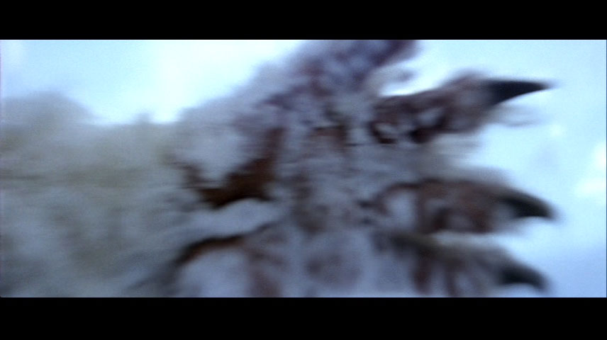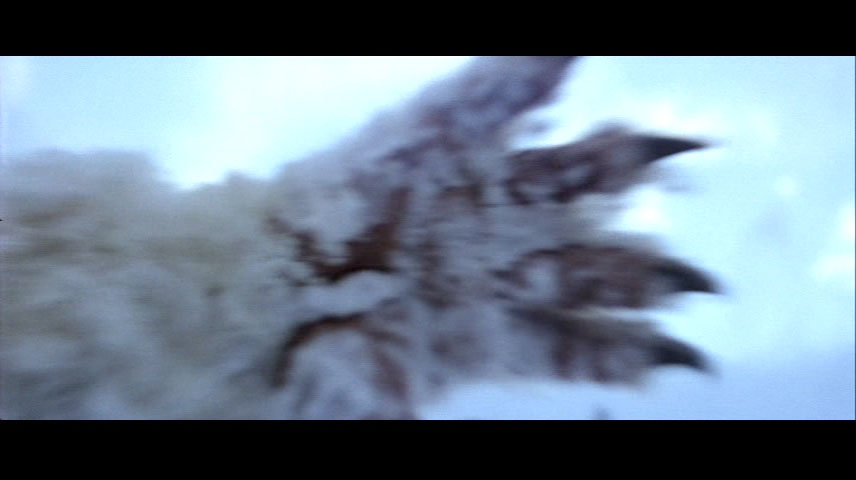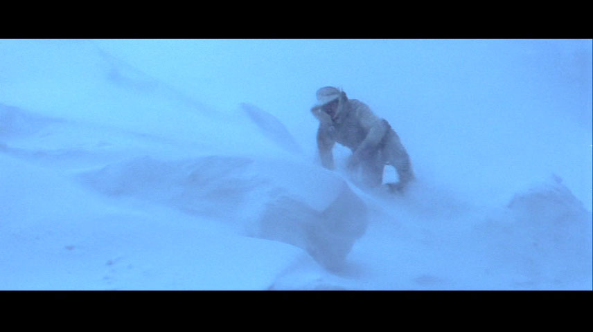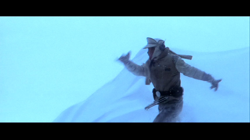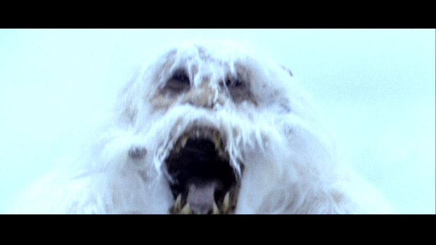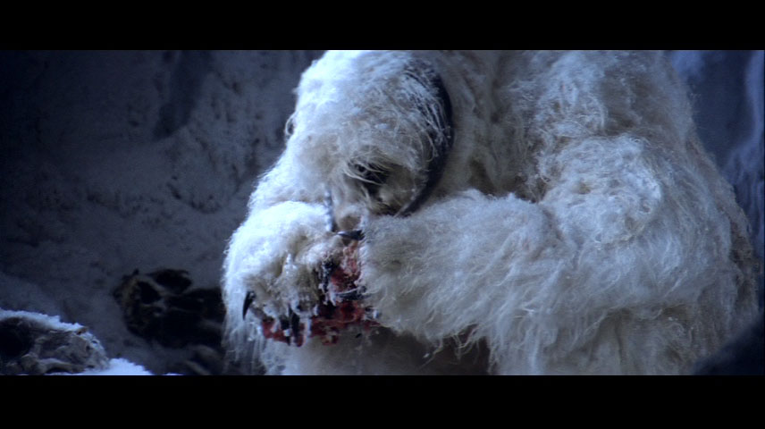 A hornless wampa snarls and lunges at its unsuspecting victim. This individual is not the same as the horned wampa that attacked Luke later in the wampa cave. [third image: Behind the Magic]