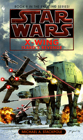 Before I forget, I must compliment Paul Youll on yet another fantastic cover. He was not credited in the book, but thankfully Stackpole gives him credits in the acknowledgments. Some truly beautiful artwork! As for the story, it comes with everything you've loved from the previous novels: great dogfights, big space battles, humor between the pilots, and, of course, some of the pilots dying. I thought the battle between the AT-AT's and the X-Wings (as shown on the cover) was great. But I kept wondering why X-Wings weren't used on Hoth since there didn't seem to be a contest between them here. Maybe cold adaption, I don't know. The ending battle was a lot of fun and very exciting. It helped pick up the story and move it along, IMO. I also enjoyed seeing Whistler in solo action. Give the droids their due! And finally the use of the Noghri from someone besides Zahn was a truly welcome addition, though I would have liked to have seen more of them. Overall, this was a pretty good X-Wing story.
