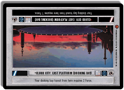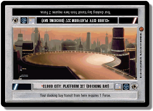 Exterior sites are placed between the first docking bay site (either East Platform or Platform 327) and the exterior sectors. If the second platform is deployed, it is placed at the ?far? end of the interior sites so there are docking bays at both ends of the interior Cloud City sites. You may use docking bay transit to go from one platform to the other.