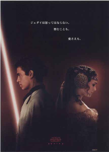 This striking image features Hayden Christensen as Anakin Skywalker and Natalie Portman as Padm? Amidala, book-ending foreboding lines of text inspired by the Jedi Code. The red-tinted image not only conveys a strong connection between the two young lovers, but also an indication that their destinies lie along separate, tragic paths.