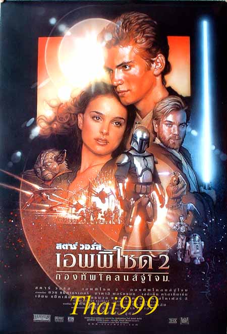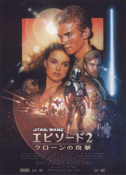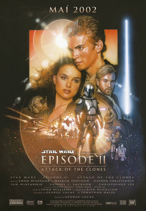 This one-sheet, illustrated by Drew Struzan, places the two lovers in the larger framework of the galactic turmoil tearing the Republic apart. Struzan's signature style continues the look initiated with the Special Edition Trilogy release posters and The Phantom Menace.