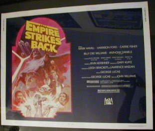 The Empire '81 + '82 re-releases were painted by Tom Jung. These two are very similar with the exception of Harrison Ford in the '82 version, who appears larger because of his success in Raiders of the Lost Ark.