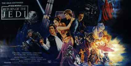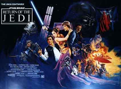 This British poster features some rather unique artwork. It's one of the few that has the Royal Guards, Boushh, and Boba Fett. The art was done by "Kirby" and designed by the Feref Association.