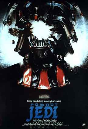 Poland continues their traditions of bizarre Star Wars posters with this Return of the Jedi poster featuring Darth Vader's exploding head. Hey, whatever sells the flick! The art for this poster was done by Witold Dybowski.