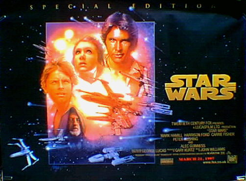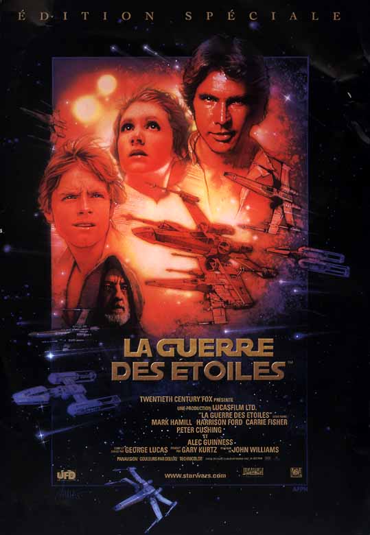 drew - The worst deadline ever! I was called one week before the poster was due to be printed in time to be in the theatres. I say "the" poster as when I was asked if I would or if I could, they only wanted one poster for all three of the films. We were on the telephone with a conference call between myself and about six others at Lucasfilm. I asked why one poster for three films? Why not one poster for each and let's not miss this great opportunity. When would there ever be another opportunity to do a tryptic, three posters that would work together as one? I put my foot in it! OK, now do three posters, a week apiece. Now that's a rush schedule. It took 20 years to get to this point and now I had three weeks to sum up the most successful trio of films of all time. There's pressure for you. Oh yeah, and this was during the holidays. I worked for three weeks, day and night, with no week ends to rest. I was exhausted, but hey... it prepared me for Episode 1, a breeze compared to this training.