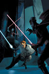 This issue follows two separate narratives, since the main characters were split up last issue. Obi-Wan and Rex (I wondered where he went) are starting their new lives as slaves in a "slave-processing facility" or work camp in the Kadavo system. Governor Roshti is also there, rejoining with the rest of his people from the Togruta colony of Kiros (the disappearance of which started this whole story arc). The Zygerrian overseer kills a trio of Togruta (strangely there are no other species seen in the prison) to prove a point to Obi-Wan, and later he witnesses cruelty dealt to other slaves. At any point, Obi-Wan could use a Jedi Mind Trick (he does only to convince a guard to stop whipping a slave) or use the Force to move objects and get out of his collar restraint. Heck, he could even kick everyone's butt with both hands tied up. But all he does is go along with everyone else. Is he waiting for the right time to act, maybe when Anakin comes to the rescue? Maybe, but he certainly doesn't display any willingness to fight back.