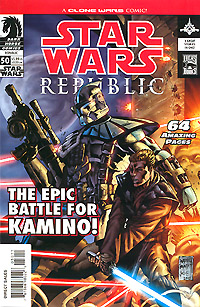 Even at 64 pages, this comic seems a bit brief for a story featuring the "epic battle for Kamino". I think a story this big could have taken up a few more comics. I would have liked to have seen more clone trooper action, too. Maybe even have the kids get into the battle more than they do? In any case, this is still an entertaining story that's well worth checking out. It's light on the drama and heavy on the action which I like. All the writers and artists did a great job on the story to make this a landmark issue. I just think $6 is a bit much for a comic, though.