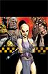 It's pretty cool to read a reference to Dengar's grudge towards Han for a previous swoop incident, and Bossk's grudge for Chewie for another incident. We find a bit more about Sardu Sallowe. He speaks a hybrid dialect of Tusken and Jawa. He's covered in wrappings. He eats a dead bird. Is he a Tusken? Could that explain the bad english? I like this intriguing character so far. Too bad we only see him and his two companions Zuckus and 4-LOM for two pages in this issue. But that's understandable