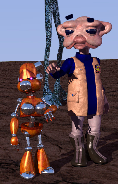 CGI Bungo and Rusti. This was my first attempt at making a lifelike character using CGI. Not bad, but Bungo looks a little stiff. Well, I'm still learning.