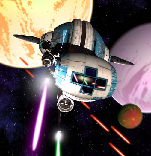 And here's that bounty now! I just wanted to test out how the guns firing would look. I'm not particularly happy with the reflections in the cockpit viewport.