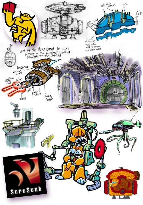 the freight receiving tower; a new SoroSuub logo; Rusti's Droid