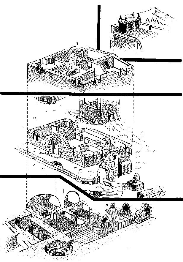 belonged to the same complex are partially standing or have been