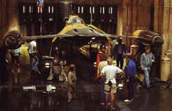 The PILOTS run for the Naboo fighter craft stacked in the hangar bay. ONE OF THE PILOTS jumps into a fighter right above where ANAKIN is hiding.